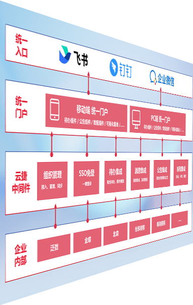 对协作平台提供支持服务,,支持企业应用与协作平台对接,,,包含组织同步、、消息集成、、、、待办集成等。。支持目前主流的协作平台:钉钉、、企微和飞书。。
