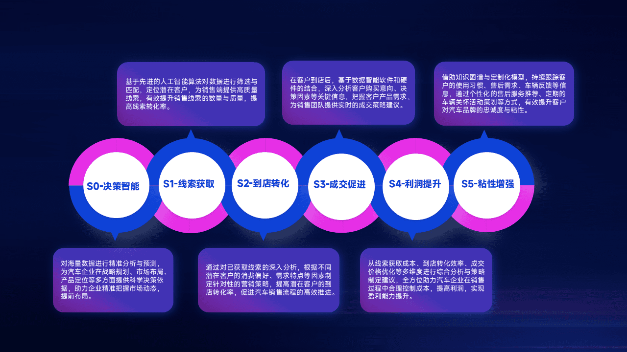 通过拓宽潜在客户来源、、优化线索分配并提高到店转化率,,,,以增强销售效率。。。。同时,,利用线索数据不断优化分析模型,,,有效提升转化率,,扩大营销影响力。。。。